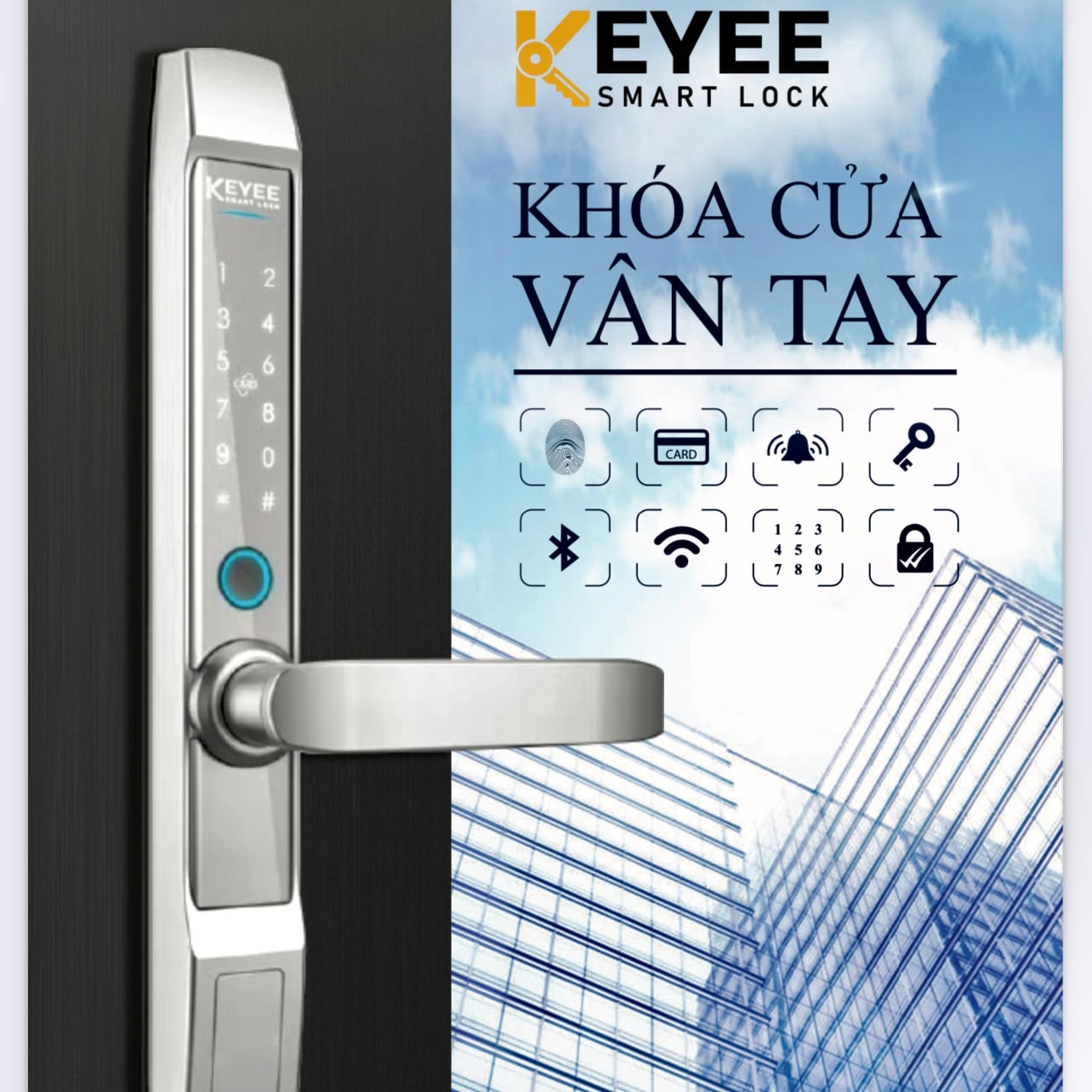 Khóa cửa vân tay là một dòng của khóa cửa điện tử. Trong đó, sản phẩm được tích hợp thêm tính năng có thể mở khóa bằng vân tay. Trên khóa vân tay được thiết kế một đầu đọc vân tay có kết nối với bộ vi xử lý trong khóa để lưu giữ thông tin vân tay. Khi mở cửa sẽ quét vân tay trên đầu đọc. Ngoài ra khóa cửa vân tay còn có thể có thêm một số tính năng như mở khóa bằng thẻ từ, mở bằng mật khẩu.