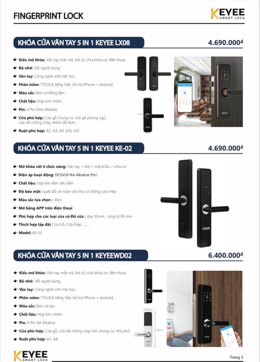 Đặc biệt các khóa cửa vân tay đều có thiết kế tinh tế, sang trọng. Sử dụng hợp kim cao cấp, độ bền tối ưu, dùng được lâu dài, khi khóa hết pin chỉ cần thay pin là vẫn có thể tiếp tục sử dụng.